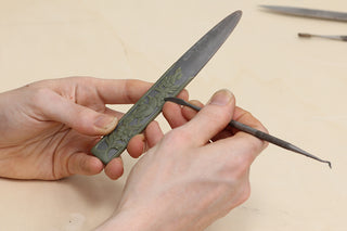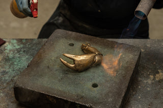 Once patinated the pieces are finished with a microcystalline wax to bring out the natural lustre of the metal.